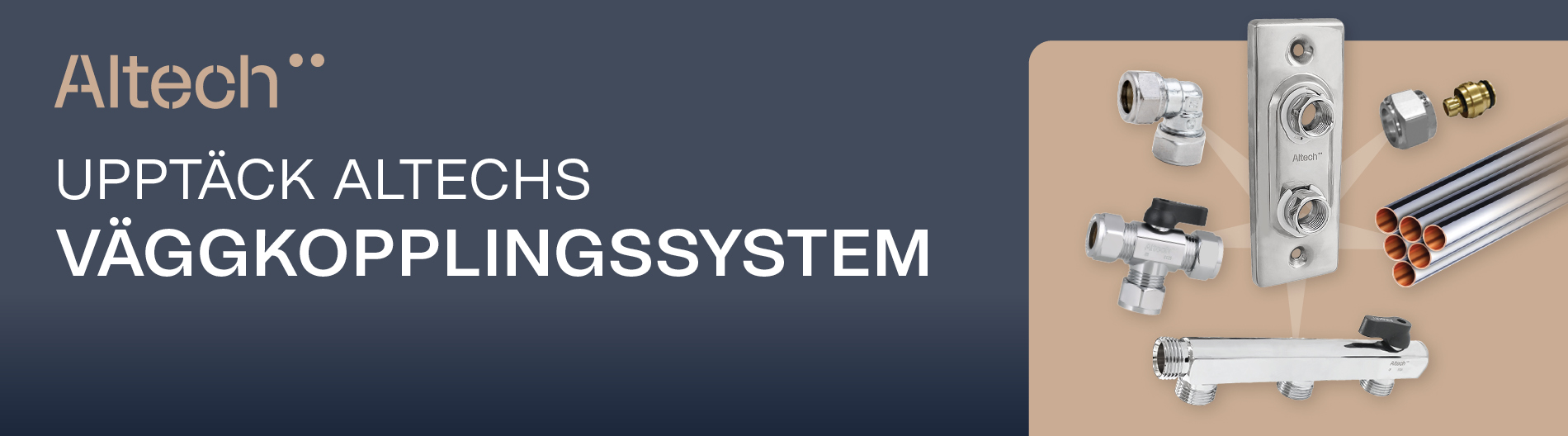 Väggbrickor: finns för kopparrör samt PE-X-, PE-RT- och AluPEX-rör. Vattenberörda delar är tillverkade i förkromad avzinkningshärdig mässing.