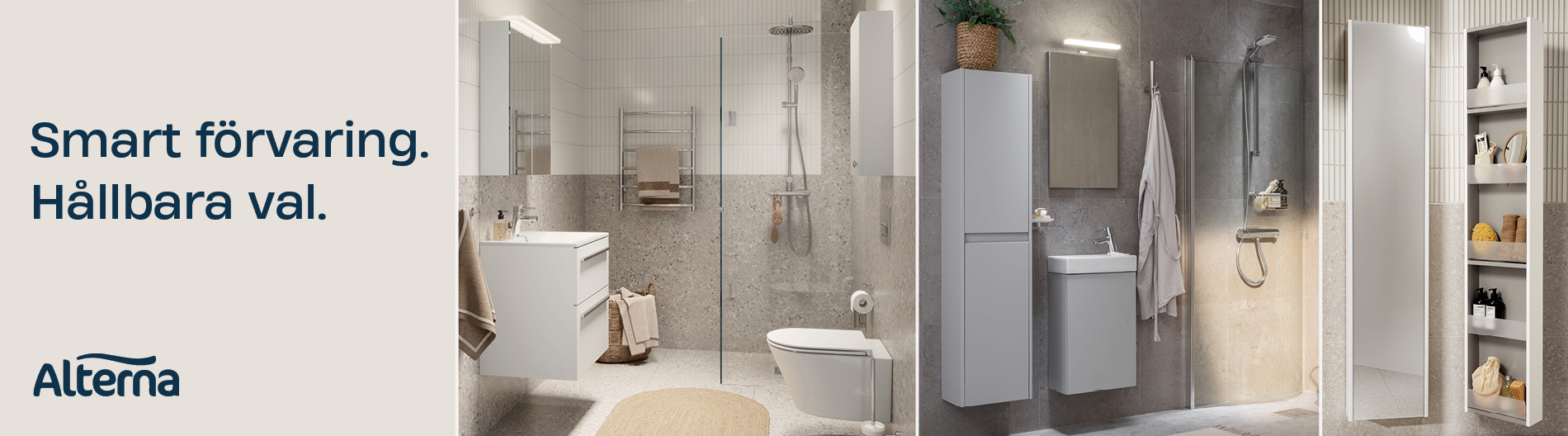 Letar du efter badrumsmöbler som är både stilrena och 100 % vattentåliga? Alterna Aqua är ett cirkulärt val med lång livslängd – perfekt för renovering och nyproduktion.
