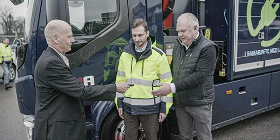 – Vi är mycket glada över att få leverera denna Volvo FL Electric, vår första helelektriska lastbil med eldriven kran. Med våra helelektriska lastbilar möter vi både stränga miljökrav och höga affärsmässiga krav från våra kunder, säger Niclas Johnson, försäljningschef Volvo Lastvagnar Sverige.