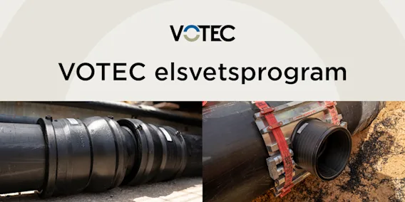 VOTEC elsvetsprogram är ett enkelt och tryggt val för dig som kund! Votec högkvalitativa elsvetsdelar används för fogning av tryckrörsystem av polyeten. De är konstruerade för att ge tillförlitliga rörfogar. Elsvetsdelarna är tillverkade för att överensstämma med internationella standarder för dricksvatten och gas.