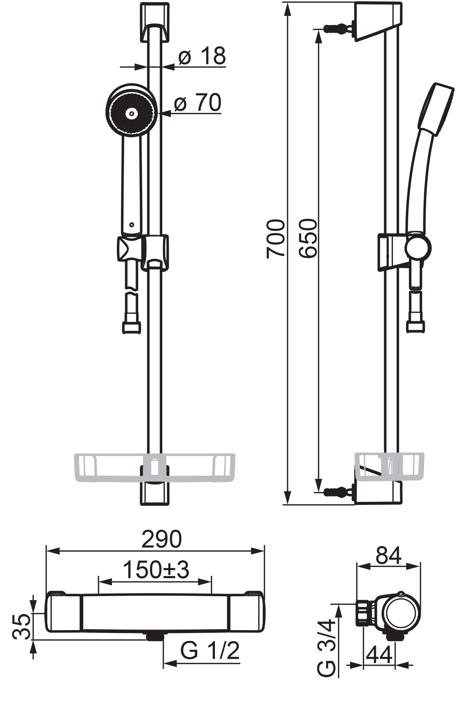 | Längd glidstång: | 700 mm |