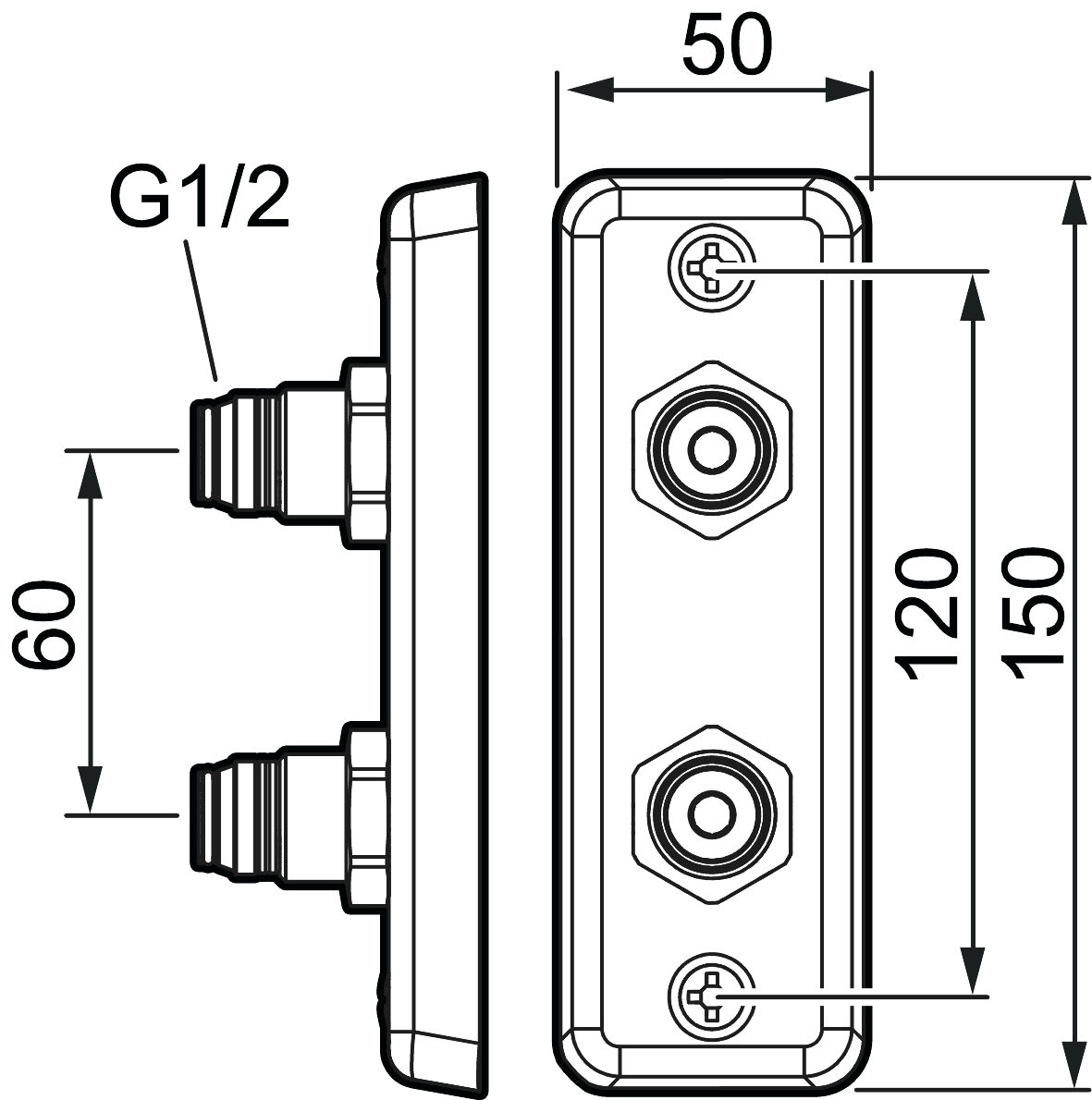 | Centrumavstånd anslutningar: | 60 mm |